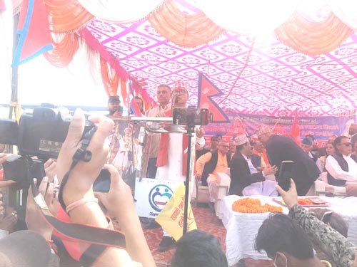 सभामा संविधान २०७२ खारेजी र संविधान २०४७ पुनरस्थापनाको मुद्दा सहित अधियान चलाएको राष्ट्रिय नागरिक संघर्ष समितिका केन्द्रीय प्रवक्ता हिरा बहादुर चन्दले संवैधानीक राजतन्त्र र बहुदलीय प्रजातन्त्रका निम्ती ढिलो नगरी संघर्षमा उत्रीनु पर्नेमा जोड दिनु भयो ।