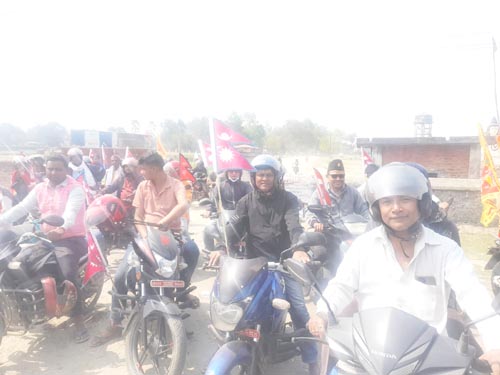 आमसभा अघि राष्ट्रिय नागरिक संघर्ष समिति र राप्रपाले बारा जिल्ला स्थित सिमराबाट निकालिएको बृहत मोटरसाइकल र्याली वीरगंज घण्टाघर हुंदै नगर परिक्रमा गरी लालबंगलामा पुगेर समापन भएको थियो ।