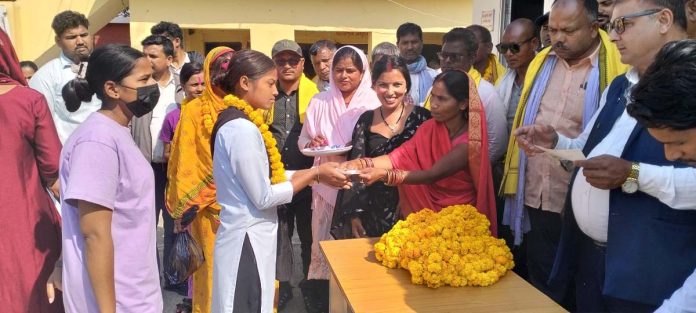 प्लस टु पास गरी २० वर्ष पु–याएर बिहे गरेको १३ छोरी र २० वर्ष पूरा गरी स्नातक तह पहिलो वर्षमा अध्यनरत २३ जना छोरीहरूलाई गाउँपालिका अध्यक्ष महतो, निमित प्रमुख प्रशासकीय अधिकृत राजेश यादव, वडा अध्यक्ष तथा सदस्यहरूले चेक हस्तान्तरण गरेको चन्द्रनगर गाउँपालिकाका अधिकृत छैठो कृष्ण प्रसाद आचार्यले जानकारी दिनुभयो।