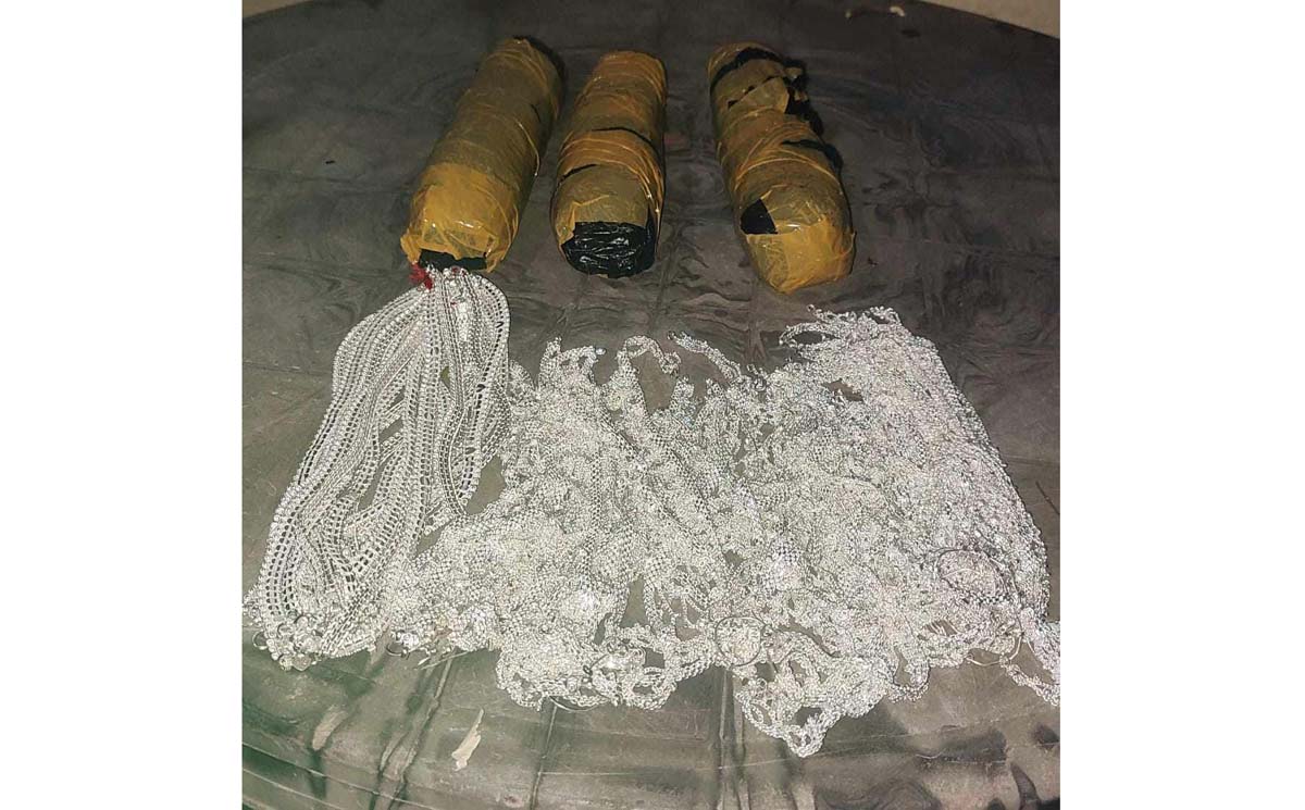 वीरगंज, १० बैशाख । जिल्ला प्रहरी कार्यालय, बाराले ६ किलो चाँदीको गहना बरामद गरेको छ । बाराको जीतपुरसिमरा उप–महानगरपालिका वडा नं.– १ पथलैया चोकमा बागमती प्रदेशको ३२५६ नम्बरको बसको क्याभिनभित्र सिटमुनि टेपले बेरेर राखिएको कार्टुन प्रहरीले खोलेर हेर्दा विभिन्न किसिमका चाँदीको रेडिमेड गहना फेला परेको बारा प्रहरीले जनाएको छ । प्रहरी चौकी पथलैयाबाट प्र.स.नि अमृत मैनालीको कमाण्डमा खटिएको प्रहरी टोलीले वीरगंजबाट तुलसीपुर दाङ जाँदै गरेको उक्त बसबाट १० लाख ८० हजार मूल्य बराबरको गहना बरामद भएपछि आवश्यक कानुनी प्रक्रिया अगाडी बढाइएको जिप्रका, बाराले जनाएको छ ।