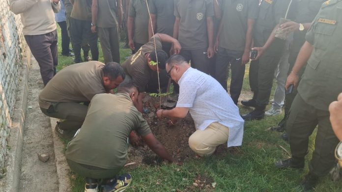 वीरगंज महानगर प्रहरीको आयोजना र ग्रिनसिटी सामुदायिकको सहकार्यमा वृक्षारोपण गरिएको हो ।