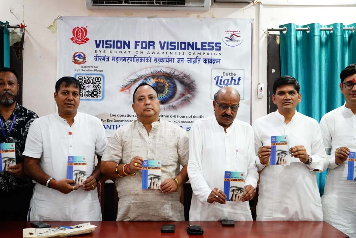 कार्यक्रममा वीरगंज महानगरपालिकाका प्रमुख राजेशमान सिंहले आँखादानजस्तो मानवीय कार्यमा महानगरको साथ रहेको उल्लेख गर्दै भने, “आँखादान केवल एक सामाजिक कार्य होइन, यो मानवीय कर्तव्य हो। हामी सबै मिलेर यस्तो अभियानलाई सफल बनाउनु पर्छ, ताकि मृत्युपछि पनि हाम्रो योगदान कसैको जीवन उज्यालो बनाउन सकोस्। वीरगंज महानगरपालिका सदैव यस्ता जनहितका प्रयासमा अगाडि रहनेछ।” वीरगंज महानगरपालिकाका जनप्रतिनिधि तथा कर्मचारीहरुलाई आज आँखा दान सम्बन्धमा जनमानसमा रहेका भ्रम तथा यथार्थका बारेमा जानकारी दिइएको थियो ।