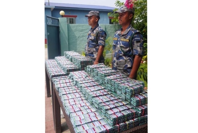 वीरगंज, ६ जेठ । पर्सा जिल्लाको वीरगंज महानगरपालिका–२ स्थित भकुवा नाकाबाट सशस्त्र प्रहरीले ठूलो मात्रामा लागुऔषध बरामद गरेको छ। भारतबाट अवैध रूपमा नेपाल भित्र्याउँदै गरिएको ट्रामोल ५० एमजी ८१ हजार ४ सय ९० ट्याब्लेट सशस्त्र प्रहरीले बरामद गरेको हो । सशस्त्र प्रहरी बल नेपाल गण नं. १३, हेड क्वार्टर पर्साबाट सशस्त्र प्रहरी नायब उपरीक्षक (सप्रनाउ) देवेन्द्र बहादुर सिंहको कमाण्डमा खटिएको टोलीले नियमित गस्तीको क्रममा भारतबाट दुर्ई जना व्यक्तिहरू टाउकोमा उक्त लागूऔषध बोकेर नेपाल आउँदै गरेको देखेपछि शंका उत्पन्न भई नियन्त्रणमा लिन प्रयास गर्दा ती व्यक्तिले बोकेको लागुऔषध त्यही छाडेर भारततर्फ भागेका थिए । बरामद गरिएका लागुऔषधलाई आवश्यक अनुसन्धानका लागि जिल्ला प्रहरी कार्यालय, पर्सामा बुझाइएको सशस्त्र प्रहरी बलका सूचना अधिकारी सप्रनाउ देवेन्द्र बहादुर सिंहले बताए । उनले जनतालाई सुरक्षाको प्रत्याभूति दिलाउन लागुऔषध तथा अन्य अवैध क्रियाकलापविरूद्ध सशस्त्र प्रहरी सधैं सतर्क रहेको जनाएका छन् ।