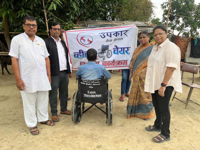 वीरगंज, ६ जेठ । सामाजिक उत्तरदायित्व अन्तर्गत उपकार सेवा नेपालले वीरगंज महानगरपालिका–१६, ईनर्वाका एक पूर्ण रूपमा अशक्त व्यक्तिलाई हवीलचेयर प्रदान गरेको छ। संस्थाकी अध्यक्ष विद्या कुमारी सरावगीको नेतृत्वमा ती व्यक्तिको घरमै पुगेर ह्वीलचेयर हस्तान्तरण गरिएको हो । कार्यक्रममा संस्थाकी अभिभावक पद्मा देवी सरावगी, सामाजिक अभियन्ता प्रकाश थारू, युवा नेता ओम प्रकाश सर्राफ साथै स्थानीय समाजसेवीहरूको उपस्थिति रहेको थियो । अध्यक्ष सरावगीले अशक्त नागरिकहरूलाई स्वाभिमानी र सहज जीवनयापनमा सहयोग पु¥याउने उद्देश्यले संस्था निरन्तर यस्ता सामाजिक सेवामूलक कार्यमा सक्रिय रहेको जानकारी दिइन् । सहयोग प्राप्त व्यक्तिका परिवारजनले उपकार सेवा नेपाल र सहयोगी मनप्रति आभार व्यक्त गर्दै यस प्रकारका कार्यक्रमले विपन्न तथा अशक्त समुदायलाई ठूलो सहारा मिल्ने बताएका छन् ।