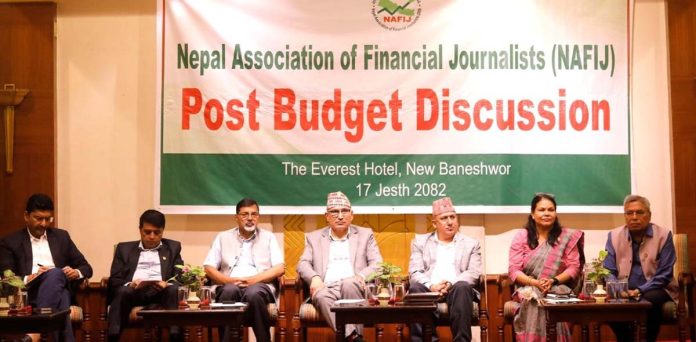 नेपाल आर्थिक पत्रकार सङ्घ (नाफिज) द्वारा आज यहाँ आयोजित बजेटपछिको छलफलमा उहाँले मेहिनतका साथ काम गरे राजस्व लक्ष्य पनि सहजै पूरा गर्न सकिने गरी निर्धारण गरिएको स्पष्ट पार्नुभयो । अर्थमन्त्री पौडेलले भन्नुभयो, “कहाँबाट आम्दानी हुन्छ, कति हुन्छ, त्यसको कहाँ र कसरी खर्च हुन्छ भन्ने सबै स्पष्ट छ । आन्तरिक ऋण पनि राष्ट्रिय वित्त आयोगले दिएको सुझावभित्र रहेर प्रक्षेपण गरिएको छ ।”