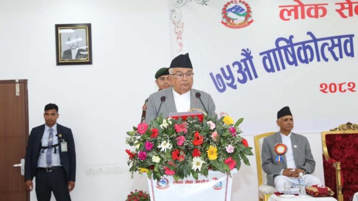 लोक सेवा आयोगको आज यहाँ आयोजित हीरक जयन्ती समारोहमा उहाँले स्थायी सरकारका रूपमा रहेको कर्मचारीतन्त्रले आधुनिक विधि, प्रविधि र दक्ष जनशक्तिको प्रयोग गरी सुशासनको मर्मअनुरुप काम गरेमा सङ्घीय लोकतान्त्रिक गणतान्त्रिक शासन प्रणालीमा जनताका चाहनालाई सम्बोधन गर्न सकिने बताउनुभयो ।