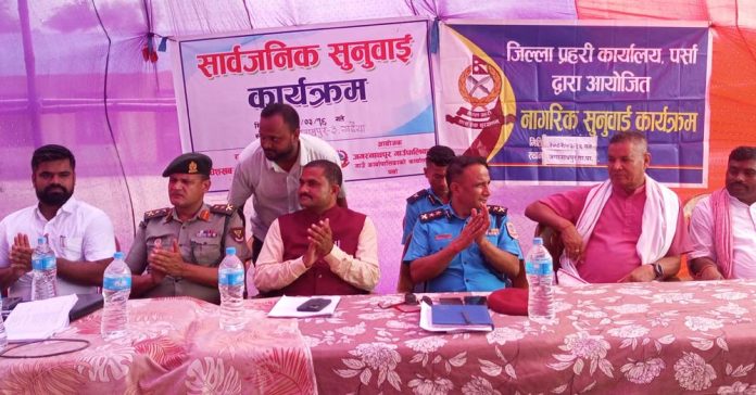 वीरगंज, १६ असार । जगरनाथपुर गाउँपालिकामा सोमवार सार्वजनिक सुनवाइ कार्यक्रम सम्पन्न भएको छ । स्थानीय सरकार र सुरक्षा निकायबीच समन्वय गर्दै स्थानीय नागरिकका गुनासा, सुझाव तथा जिज्ञासालाई प्रत्यक्ष रूपमा सम्बोधन गर्ने उद्देश्यले जगरनाथपुर–३ स्थित गढैया स्कुलको मैदानमा कार्यक्रम भएको हो । जगरनाथपुर गापा कार्यपालिकाको कार्यालय तथा जिल्ला प्रहरी कार्यालय पर्साले आयोजना गरेको सार्वजनिक सुनुवाईमा स्थानीय सर्वसाधारणहरूले प्रशासन, सुरक्षा, सेवा प्रवाह, विकास निर्माण लगायतका विषयमा प्रश्न राखेका थिए । जनप्रतिनिधि तथा सुरक्षा निकायका प्रमुखहरूले नागरिकका प्रश्नहरूको उत्तर दिएका थिए । गाउँपालिका अध्यक्ष श्रीकान्त यादवको अध्यक्षतामा भएको कार्यक्रममा जिल्ला प्रहरी कार्यालय पर्साका एसपी गौतम मिश्र, सशस्त्र प्रहरी बल पर्साका एसपी राधेश्याम धिमाल, नेपाली काङग्रेसका नेता प्रेम बहादुर थापा, उपाध्यक्ष बबिता सिंह क्षेत्री, वडाध्यक्ष बिहारी मुखिया नुनिया, वीरगंज जेसिजका अध्यक्ष सरोज चौरसियालगायतको सहभागिता थियो । कार्यक्रममा स्वागत प्रमुख प्रशासकीय अधिकृत सन्देश यादव र सञ्चालन पत्रकार क्रान्ति साहले गरेका थिए ।