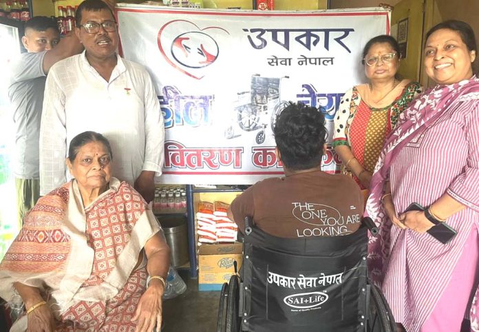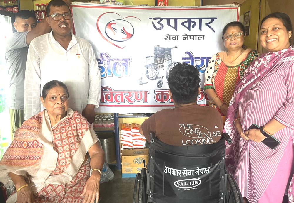 वीरगंज, २४ असार । उपकार सेवा नेपालले वीरगंज महानगरपालिका वार्ड न. १० निवासी लक्ष्मी खेतानको एक मात्र छोरा केशव खेतानलाई ह्वीलचेयर वितरण गरेको छ ।