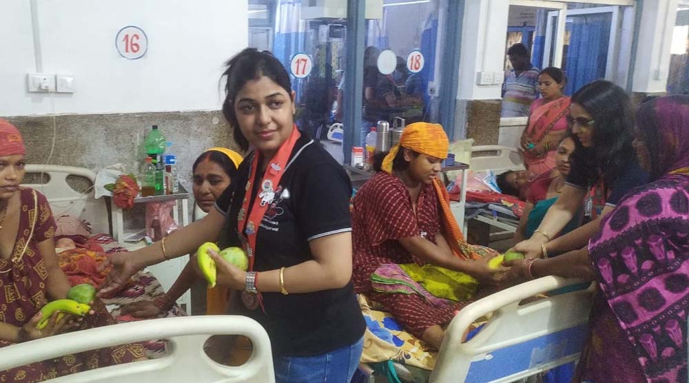 वीरगंज, २८ असार । नेपालमा लेडिज सर्कलको स्थापना दिवसको अवसरमा वीरगंज लेडिज सर्कल–३ ले नारायणी अस्पतालमा फलफुल वितरण गरेको छ । कार्यक्रममा ५५ किलो आँप र ३०० थान केरा नारायणी अस्पतालमा रहेका बिरामी र कुरूवाहरूलाई वितरण गरिएको हो । लेडिज सर्कल–३ वीरगंजकी अध्यक्ष नन्दनी अग्रवालको अध्यक्षतामा भएको कार्यक्रममा उपाध्यक्ष निधि जाटिया, सचिव श्रेया रूङटा, कोषाध्यक्ष नेहा अग्रवाल, पूर्वअध्यक्ष खुशबु सिंघानियालगायतको सहभागीता थियो । अध्यक्ष नन्दनी अग्रवालले नेपालमा लेडिज सर्कलको स्थापना दिवसको अवसरमा देशभर विविध कार्यक्रम गरेर यो दिनलाई भव्यताका साथ मनाउने क्रममा आज हामीले पनि सानो प्रयासस्वरूप नारायणी अस्पतालका बिरामी कुरूवालाई फलफुल वितरण गरेर सामाजिक उत्तरदायित्व पूरा गरेको जानकारी गराइन् ।