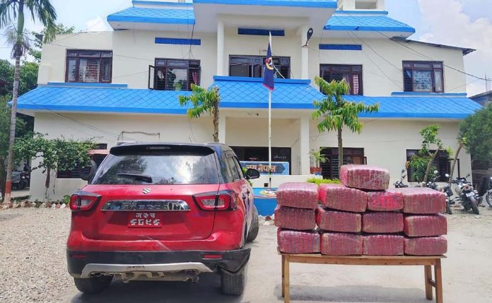 रौतहट, ६ साउन । रौतहट जिल्लाको गरूडास्थित झाझ खोला नजिकबाट ठूलो परिमाणमा गाँजा प्रहरीले बरामद गरेको छ । चन्द्रनिगाहपुरबाट गौर जाँदै गरेको ग३च ६७९६ कारलाई प्रहरीले चेकजाँचका लागि रोक्न खोज्दा चालकले तीव्र गतिमा गाडी हाँकेर भाग्ने प्रयास गरेको थियो । इलाका प्रहरी कार्यालय गरूडाको टोलीले मंगलवार बिहान उक्त गाडी गरूडा नगरपालिका–५ को झाझ खोला नजिक करिब २० फिट गहिरो खेतबाट बरामद गरेको छ भने चालक उखुवारी हुँदै फरार भएका छन् । प्रहरीले क्रेनको सहायताले रातो रड्ढो ब्रेजा कारलाई खेतबाट निकालेको छ । कार चेकजाँचको क्रममा १३३ किलो गाँजा बरामद भएको इलाका प्रहरी कार्यालय गरूडाका डिएसपी राजन कार्कीले बताए । उनले गाँजाको तस्करीवारे गहन अनुसन्धान भइरहेको जनाएका छन् ।