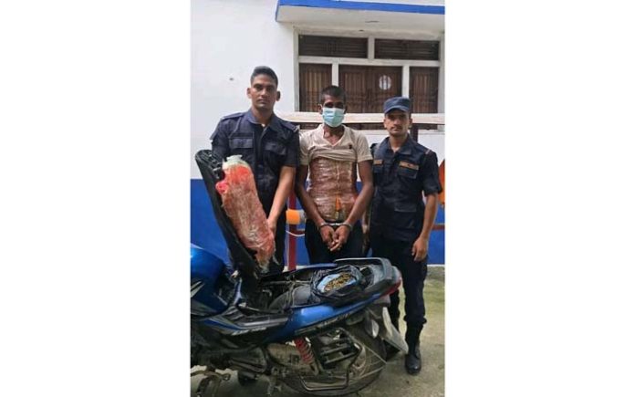 वीरगंज, १७ साउन । आठ किलो ४४० ग्राम गाँजासहित पर्सा जिल्लाबाट एकजना व्यक्ति पक्राउ परेका छन् । पर्सा जिल्लाको पटेर्वा सुगौली गा.पा.४ करबोला चोकबाट इलाका प्रहरी कार्यालय पटेर्वासुगौलीको टोलीले चेक जाँच गर्ने क्रममा बेलुवाबाट देवरवाना जाँदै गरेको भारतीय नं.को मोटरसाइकल सहित चालक पर्सागढी न.पा. ९ एकटाङ्गा बस्ने वर्ष ३४ को जग मोहन यादवलाई पक्राउ गरेको हो । उनले मोटरसाइकलको सिटमुनि र शरिरमा बाँधीएको अवस्थामा लागू औषध गाँजा ८ किलो ४४० ग्राम फेला परेको जिल्ला प्रहरी कार्यालय, पर्साले जनाएको छ ।