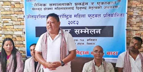 वीरगंज, १६ साउन । सिमरा भेट्रान क्लबको आयोजनामा भदौ २१ गतेदेखि २८ गतेसम्म सिमरा रंगशालामा अन्तर्राष्ट्रिय महिला फुटबल प्रतियोगिता आयोजना हुने भएको छ । क्लबले शनिवार पत्रकार सम्मेलनमा प्रतियोगितावारे जानकारी गराएको हो । क्लब अध्यक्ष राजकपुर राउतका अनुसार प्रतियोगितामा नेपाल पुलिस क्लब, नेपाल एपीएफ क्लब, त्रिभुवन आर्मी क्लब, मोरङ जिल्ला फुटबल संघ, रौतहट जिल्ला फुटबल संघ, धरान सिटी फुटबल क्लब, दार्जिलिड्ढो कुरूसङ गल्स फुटबल एकेडेमी र आयोजक क्लब गरी ८ टिमको सहभागीता रहने र रात्री समयमा प्रतियोगिता सिमरा रंगशालामा सञ्चालन हुनेछ । प्रतियोगिताको विजेता टोलीले नगद पाँच लाख रुपियाँँ र उपविजेताले दुर्ई लाख ५० हजार रुपियाँँ प्राप्त गर्नेछ । त्यस्तै, सर्वाेत्कृष्ट खेलाडीलाई एक लाख रुपियाँँ तथा उत्कृष्ट डिफेन्डर, मिडफिल्डर, गोलरक्षक, फरवार्ड र प्रशिक्षकलाई जनही १० हजार रुपियाँँ पुरस्कार प्रदान गरिनेछ । चार वर्षदेखि भेट्रान फुटबल आयोजना गर्दै आएको सिमरा भेट्रान क्लबले महिला फुटबलको विकास र प्रवद्र्धनका लागि यसपटकदेखि महिला फुटबल प्रतियोगिता शुरू गरेको हो । कार्यक्रममा बारा जिल्ला फुटबल संघका अध्यक्ष रामचन्द्र लामाले पछिल्लो समय महिला फुटबलप्रति बढ्दो आकर्षण देखिएको बताए । उनले सिमरालाई महिला फुटबल खेलाडी उत्पादनको केन्द्र बनाउन सकिने धारणा राखे । कार्यक्रममा जीतपुरसिमरा उपमहानगरपालिका वडा नं. १४ की अध्यक्ष चयन गुरूङ र वडा नं. २ का अध्यक्ष धनबहादुर श्रेष्ठ, नव जनजागृति युवा क्लबका महासचिव शम्भु सिंह ठकुरी र आयोजक क्लबका हरी चौधरीलगायतको सहभागिता थियो ।