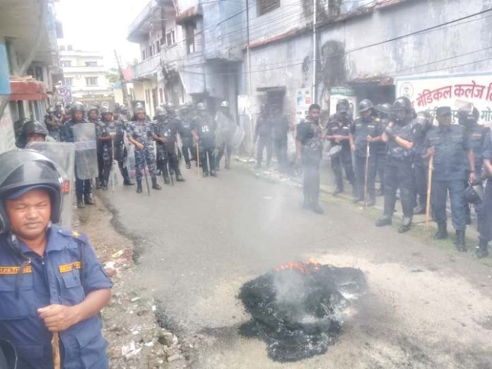 मृतकका आफन्त एवं गाउँले मिलेर जिल्ला प्रहरी कार्यालय अगाडि टायर बालेर बिहान करिब १० बजेदेखि निरन्तर प्रदर्शन गरेका हुन् । राजविराजको मुख्यचोक (दशन चोक) मा समेत टायर बालेर दिनभरी प्रदर्शन गरिएका कारण मुख्य बजार बन्द भएको थियो ।