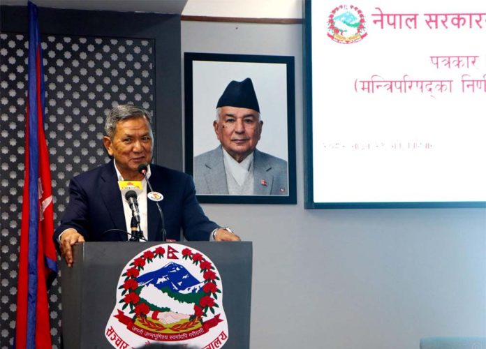 आगामी भदौ ३१ देखि असोज २ गतेसम्म गणतन्त्र कोरियाको सिओल सहरमा आयोजना हुने ‘ग्लोबल इन्फास्टक्चर कोअपरेसन कन्फ्रेन्स २०२५’ मा ऊर्जा, जलस्रोत तथा सिँचाइ मन्त्रीलाई सहभागिताका लागि स्वीकृति दिने, राष्ट्रिय सहकारी नियमन प्राधिकरणको रिक्त विज्ञ सदस्यमा डा रमेशप्रसाद चौलागाइँ (भक्तपुर)लाई नियुक्त गर्ने, नेपाल सरकारको नाममा दर्ता कायम रहेको बाजुरा जिल्ला साविक बाँध गाविस–४ को सात हजार ४८५ वर्गमिटर सरकारी प्रकृतिको जग्गा प्रशासकीय भवन निर्माणका लागि हिमाली गाउँपालिका, बाजुरालाई उपयोग गर्न स्वीकृति दिने सरकारको निर्णय रहेको मन्त्री गुरुङले जानकारी दिनुभयो ।
