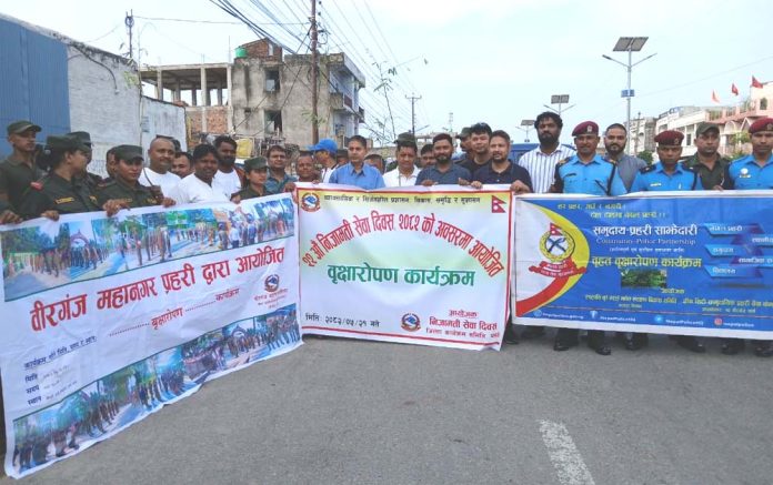 वीरगंज, २१ भदौ । २२औं निजामती सेवा दिवस २०८२ को उपलक्ष्यमा जिल्ला प्रशासन कार्यालय पर्सा तथा ग्रीन सिटी सामुदायिक प्रहरी सेवा केन्द्र, आदर्शनगर–१०, वीरगंजको संयुक्त आयोजनामा बृहत वृक्षारोपण कार्यक्रम सम्पन्न भएको छ।