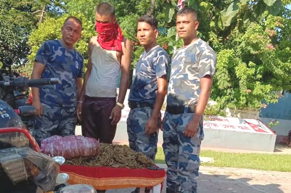 वीरगंज, १० असोज । सशस्त्र प्रहरी बल पर्साले आठ किलो गाँजासहित एकजनालाई पक्राउ गरेको छ । असोज ९ गते सशस्त्र प्रहरी बल, नेपाल वि.ओ.पि. अमरपट्टीबाट खटीएको टोलीले पर्सा जिल्लाको विन्दवासिनी गा.पा.–४ अमरपट्टी वरगाछी स्थित नेपालबाट भारत जादै गरेको भारतीय नम्बरको मोटरसाइकलमा सवार पर्सागढी न.पा.–९ एकटाङा बस्ने वर्ष २१ को सरोज प्रसाद यादवलाई चेकजाँच गर्ने क्रममा गाँजासहित पक्राउ गरिएको सशस्त्र प्रहरीले जनाएको छ । यादवले शरिरभित्र र मोटरसाइकलको सिटमुनि लुकाई छुपाई राखेको प्रतिबन्धित लागु औषध गाँजा ८ के.जी.फेला परेपछि आवश्यक कार्वाहीको लागी जिल्ला प्रहरी कार्यालय पर्सामा बुझाएको सूचना अधिकारी सशस्त्र प्रहरी नायव उपरीक्षक सुरज कार्कीले जानकारी गराएका छन् ।